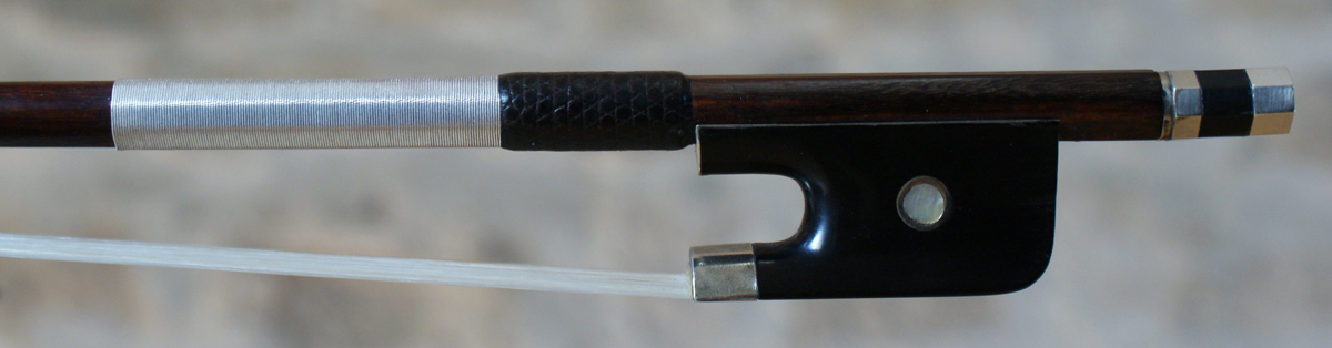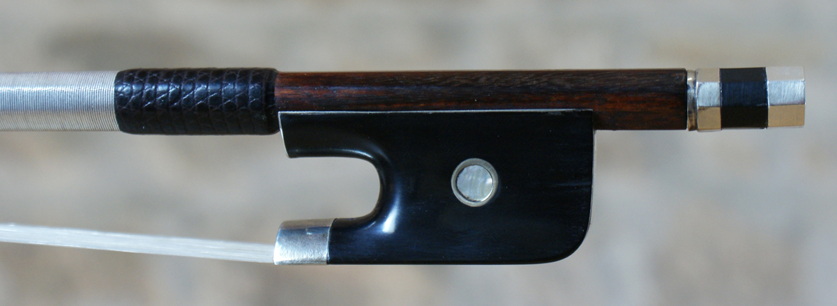 Très bel archet de Violoncelle du Maitre français,  Charles  Guinot. Fabriqué vers 1850.Baquette ronde fait dans un beau bois de Pernambouc brun rouge doré.